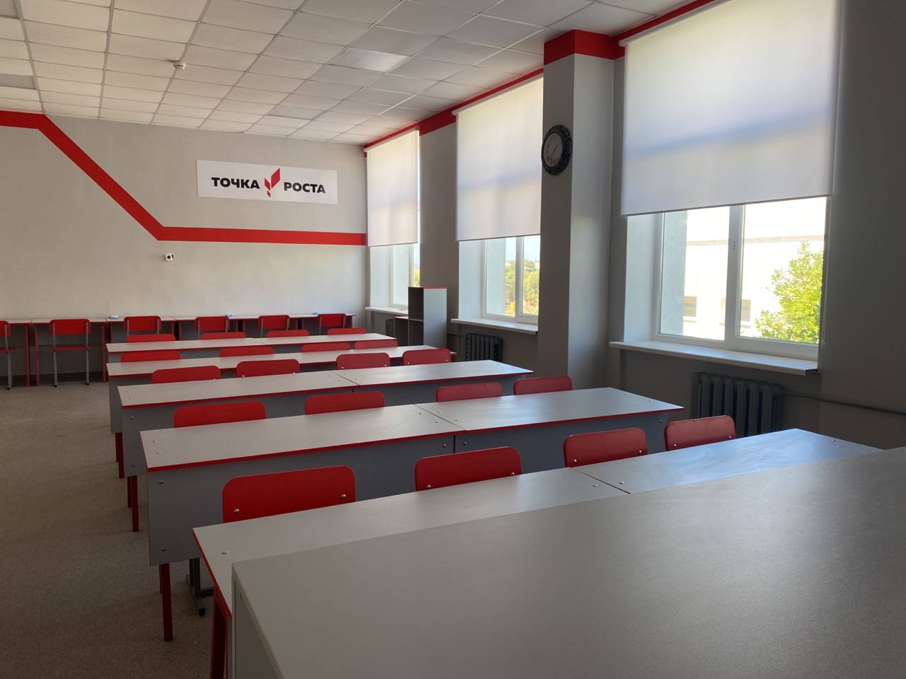В учебных кабинетах сделан ремонт с соблюдением Методических рекомендаций по созданию и функционированию в общеобразовательных организациях, расположенных в сельской местности и малых городах, центров образования естественно-научной и технологической направленностей: смонтированы подвесные потолки, произведена замена дверей, установлено освещение, оштукатурены и покрашены стены, выполнен демонтаж старых полов - постелен линолеум. Оформление кабинетов соответствует официальной символике и фирменному стилю Центров «Точка роста».