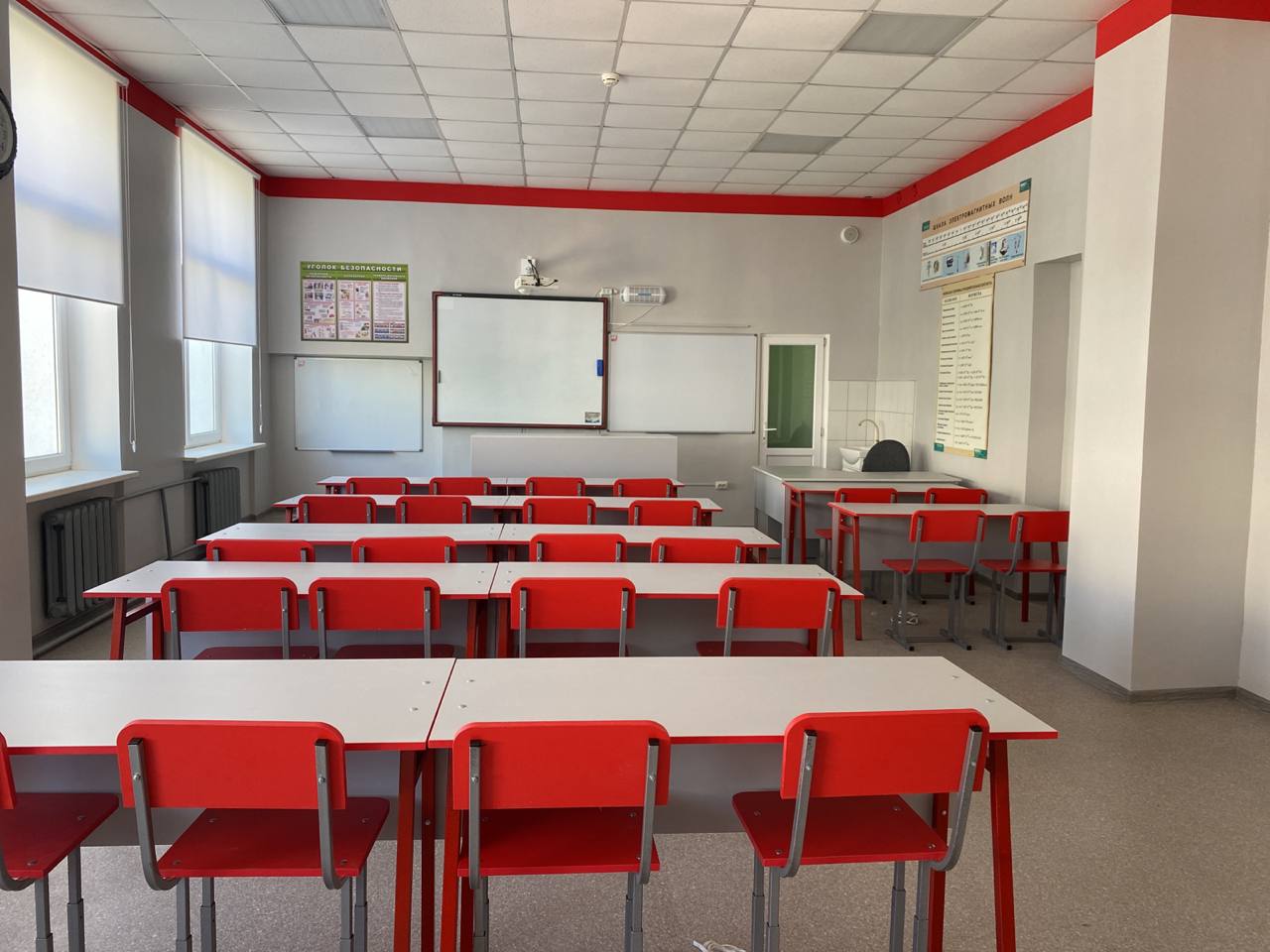 Подготовленные классы укомплектованы новой красивой мебелью и специальным оборудованием (многофункциональные устройства, ноутбуки, образовательные наборы для изучения многокомпонентных робототехнических систем и манипуляционных роботов, для подготовки к ОГЭ по физике, биологии, химии).