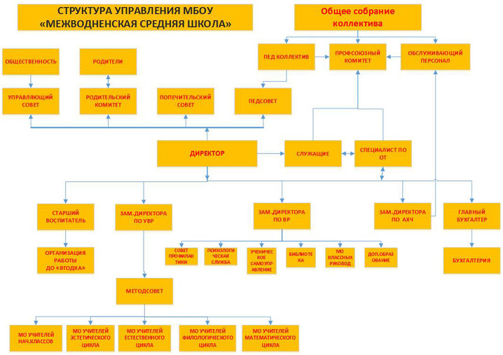 Единоличным исполнительным органом МБОУ «Межводненская средняя школа им.Гайдукова А.Н.» является руководитель МБОУ «Межводненская средняя школа им.Гайдукова А.Н.» - директор.